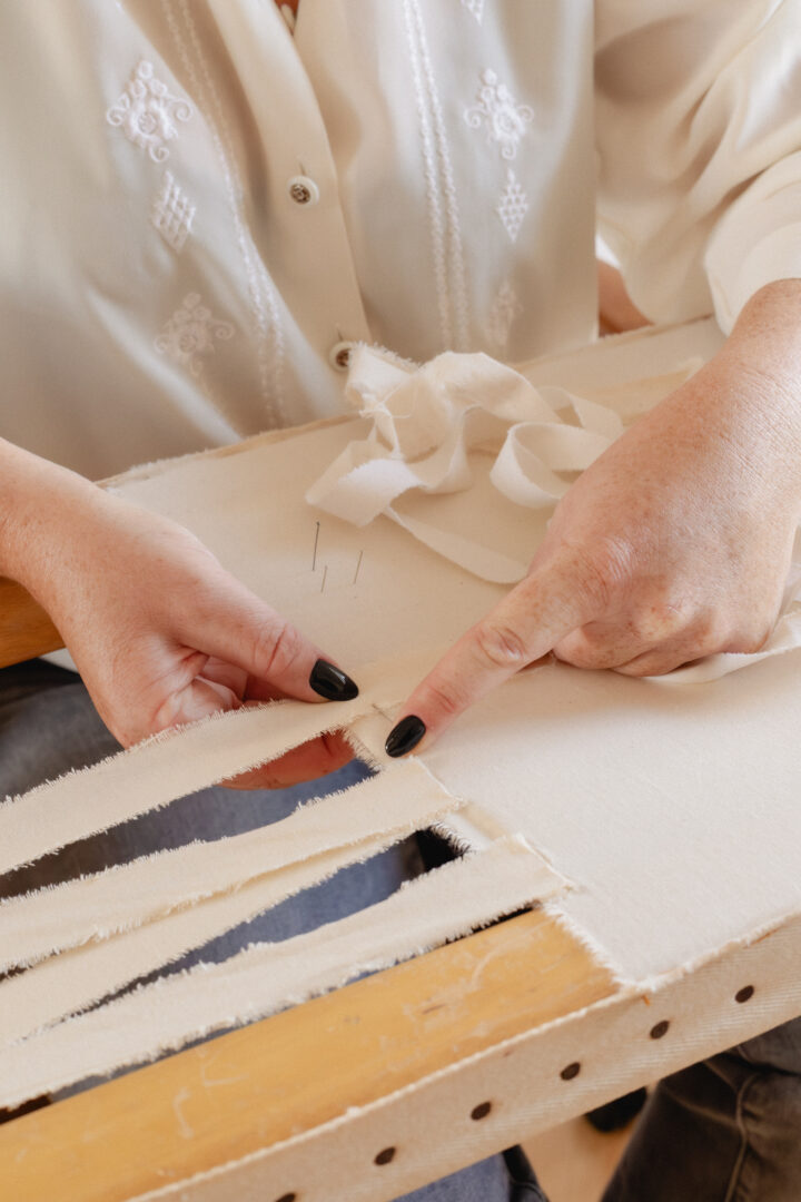 Porteuse d’un savoir-faire d’excellence, j’allie techniques traditionnelles et expérimentation des matériaux pour insuffler un nouveau souffle à la broderie.
